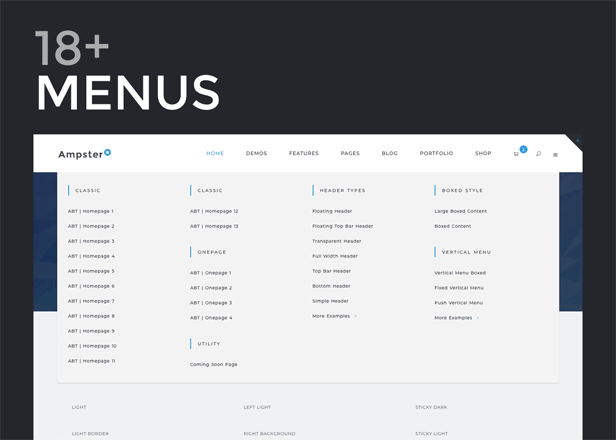 Thanks for checking out our latest and greatest WordPress theme, Ampster. A true multi-niche WordPress theme perfect for any type of business. With over 58 prebuilt complete demos (not just homepages) all with one click installs you’ll have your site up in no time. Grab Amspter now for an amazing intro price!